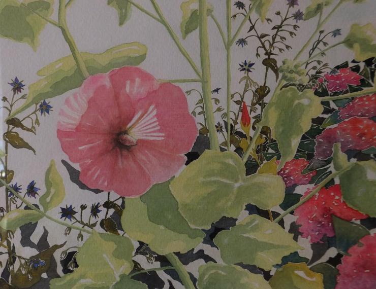 De maten van de aquarellen varieren van 15x15 cm tot 50x50 cm,